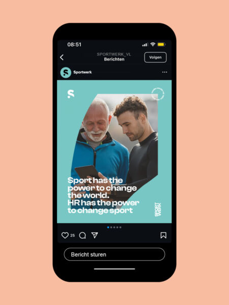 Op de site en in de bijhorende campagne schitterden de sportlesgevers als trotse ambassadeurs. Verder ontwierpen we een embleem binnen de huisstijl dat later deel van het logo werd. Zo werd Sportwerk Vlaanderen meer dan ooit dé referentie en pionier in het professionaliseren van de sportsector en in de tewerkstelling in de sport.